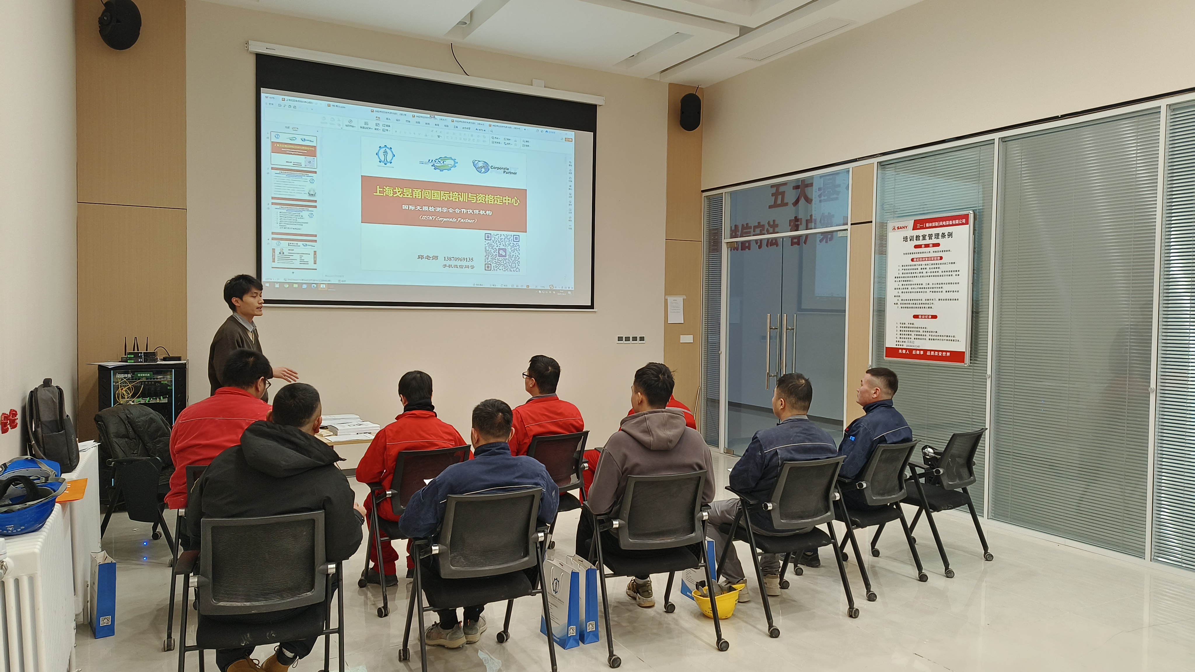 12月2日-12月6日,为提升风电装备无损检测的专业技术能力,筑牢产品质量与设备安全防线,上海戈昱甬闯国际无损检测资格鉴定与培训中心走进三一重能锡林郭勒基地,成功开展了为期一周的相控阵检测取证专项培训。